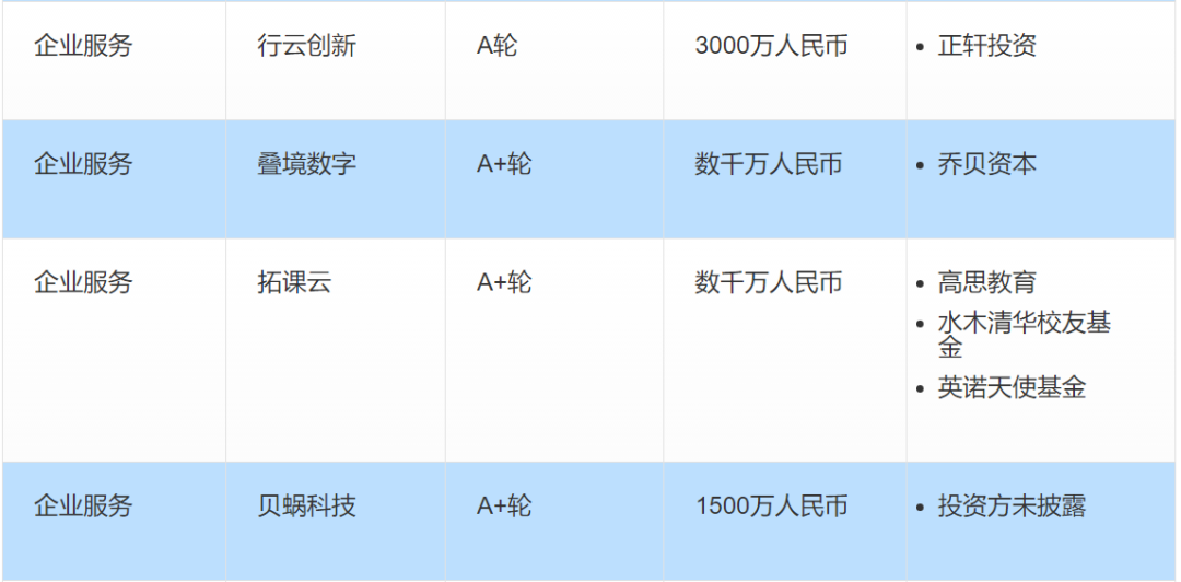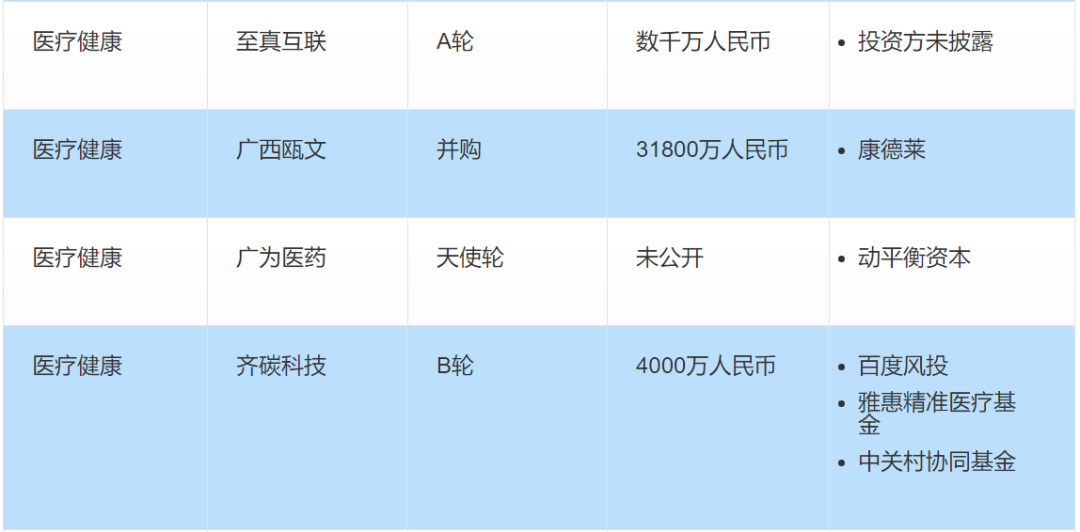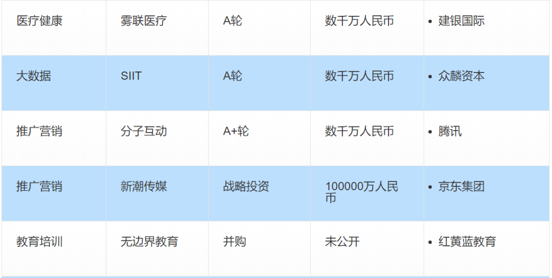本周国内的投融资事件主要在医疗健康、教育培训、企业服务等领域。以下为本周值得关注的投融资事件: