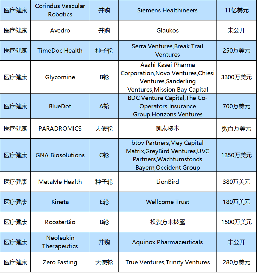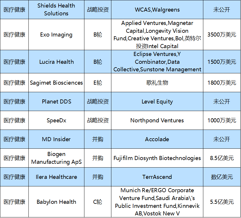 本周国外的投融资事件主要医疗健康,企业服务,金融等领域。以下为本周值得关注的投融资事件: