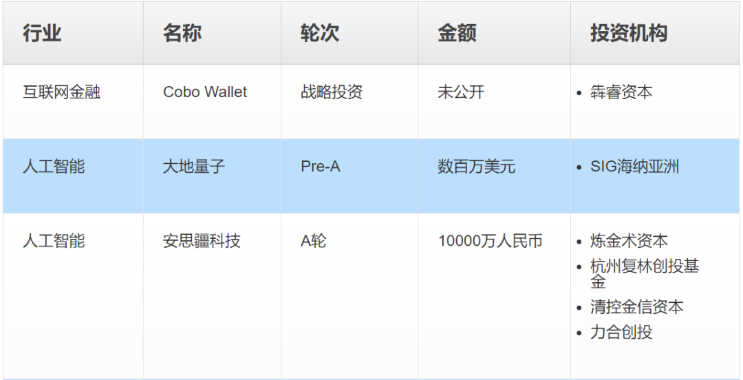 本周国内融资事件汇总