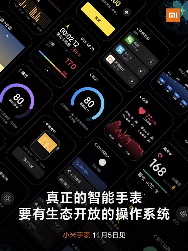 【小米官宣11月5日发布全新品类小米手表】11月5小米即将发布全新品类——小米手表。这也是小米品牌推出的首款手表类产品。从雷军曝光的实拍图来看,新品外观采用方形设计,类似Apple Watch。米家官方微博30日表示,小米手表能安装APP。