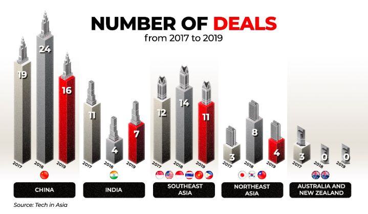 根据Tech in Asia的数据显示,从2017年至2019年,东南亚地区房产科技融资数量与融资总额一直处于亚太地区除中国以外的最高水平。