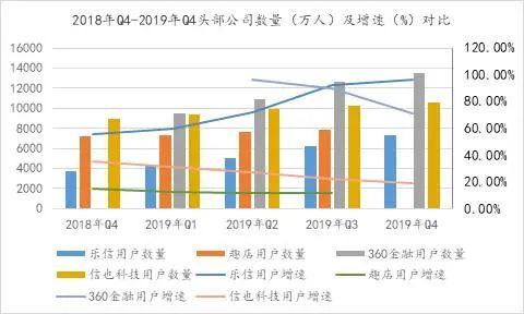 头部平台用户指标对比:360金融用户规模最高 乐信用户增速最快
