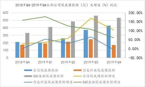 以四季度来看,乐信促成贷款额428亿,同比增长104%;360金融撮合贷款总额531.21亿元;宜人金科促成借款总额达79.98亿元;趣店开放平台撮合交易金额80.2亿元,环比下降19.7%;信也科技撮合贷款168.9亿元,比去年同期176亿元下滑了4.1%