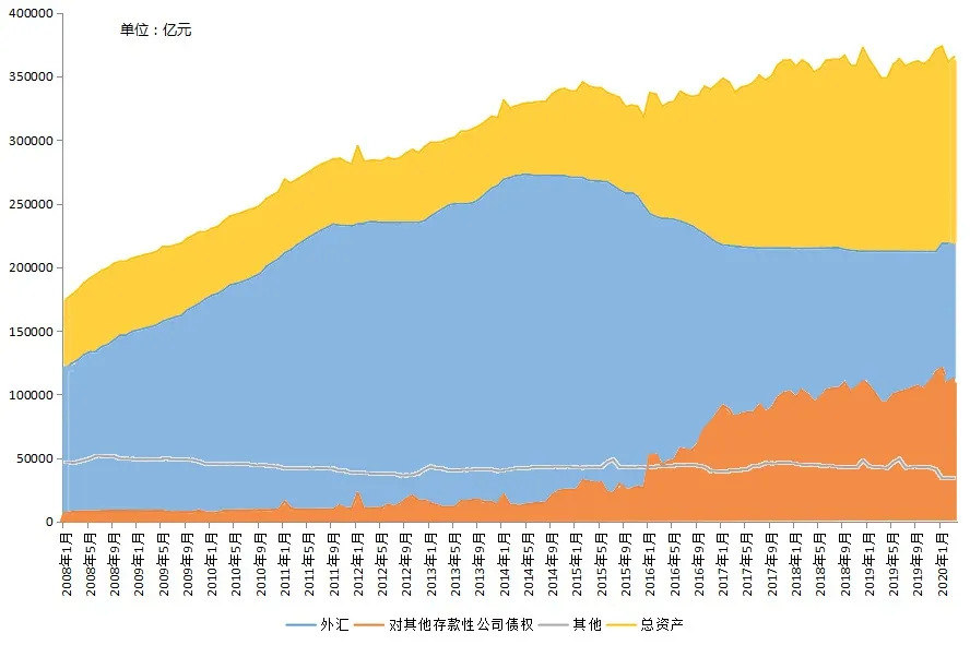 不过,中国央行的资产负债表显示,从2014年开始,外汇资产也在快速减少,似乎也有去美元化的趋势。这到底是怎么回事?