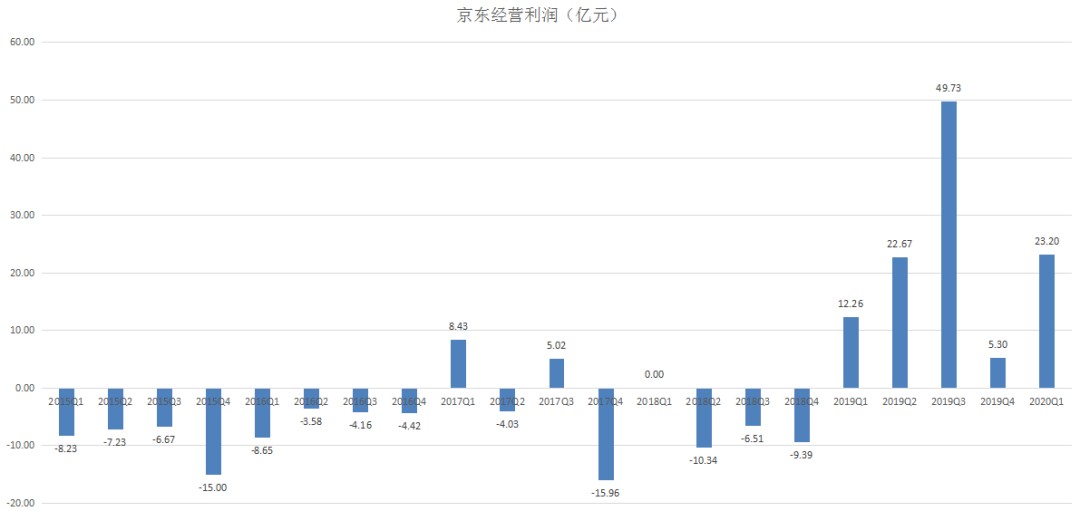 尤其在疫情侵袭的第一季度,京东依然保持23.2亿元的运营利润。