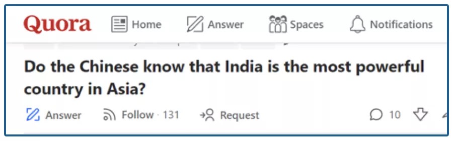 “中国人知道印度是亚洲最强大的国家吗?”