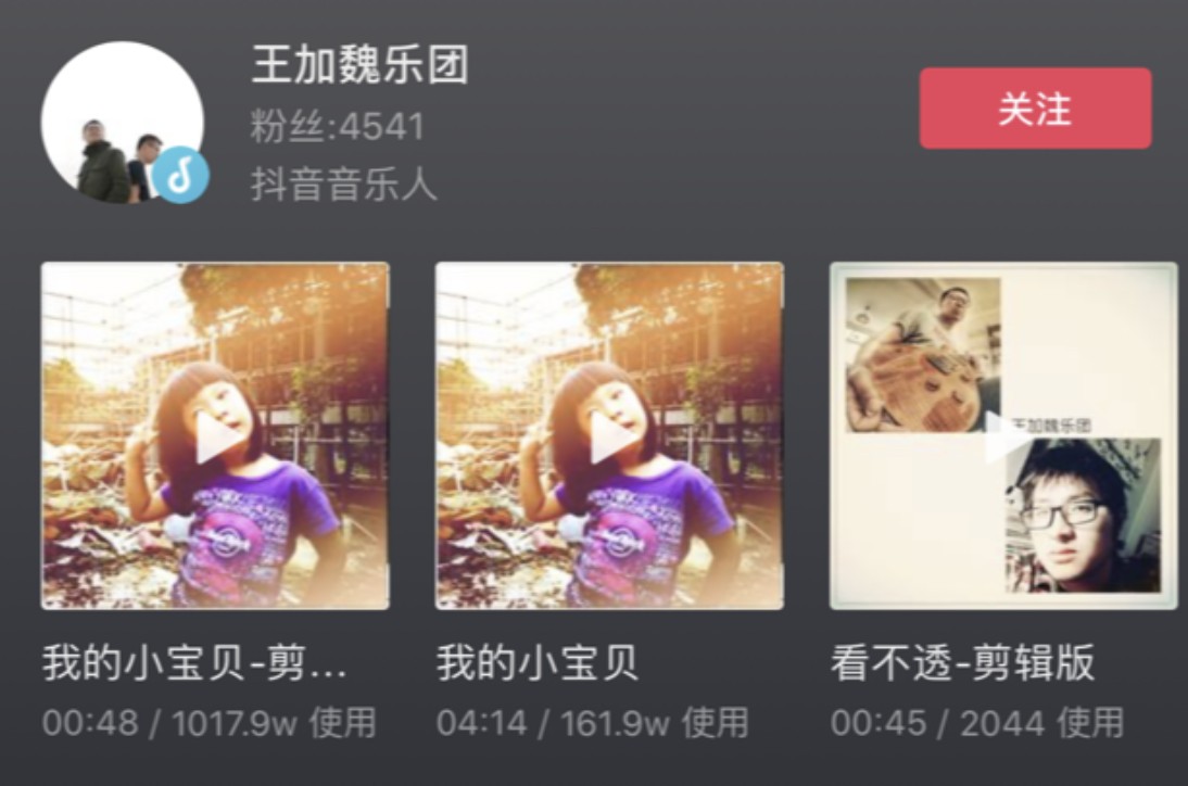 抖音“⾳乐⼈亿元补贴计划”试行两个月内,超过80%的签约⾳乐⼈都已经开始从计划中获得收入。像是前面提到的王加魏乐团,就凭借一首温暖感人的《我的小宝贝》在抖音上收获1017.9万个相关视频使用,连续两个⽉⽉收⼊都已经突破了2万元。这正是抖音在让更多音乐人的才华能够直接反哺创作本身的直接证明。