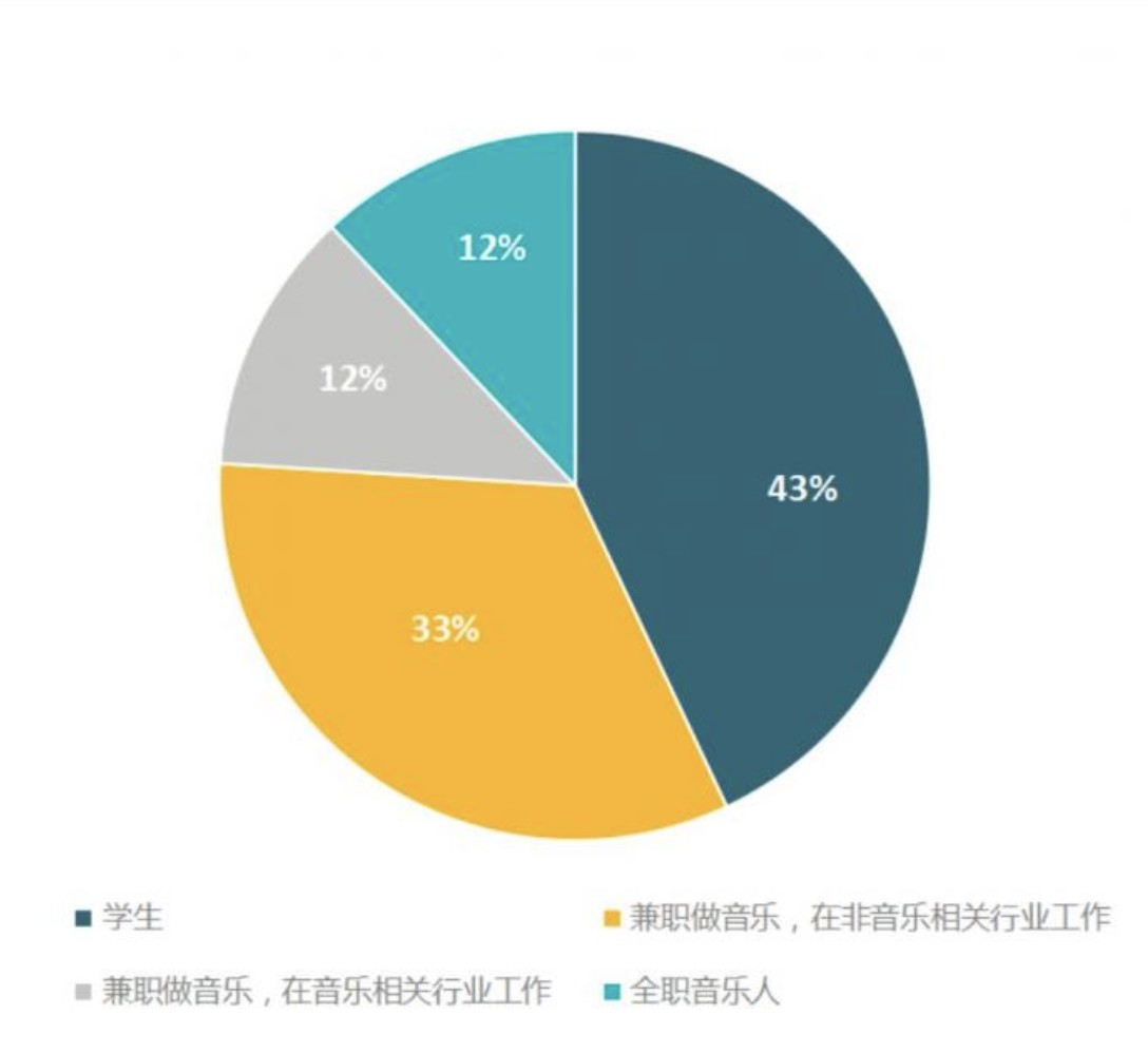 报告里面还有一点相当引人注意:虽然音乐行业内获取收益的渠道多样化,但仅靠音乐收入无法为音乐人提供生活保障,音乐收入仅仅能占到被调查者总收入的6%,而58%的音乐人音乐收入仅占总收入的0-5%。可以看到,音乐收入无法成为音乐人全部的收入来源及生活保障。