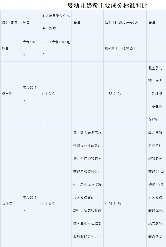 (图 / 中国与欧盟婴儿奶粉部分要素比较)