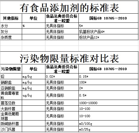 但有一点很关键——我国的标准在婴幼儿奶粉非标的添加物上更加严格,尤其是在食品添加剂和污染物等有害物质的控制上,我国的标准有明确的要求,而欧盟和美国的标准对此并没有具体的指标。