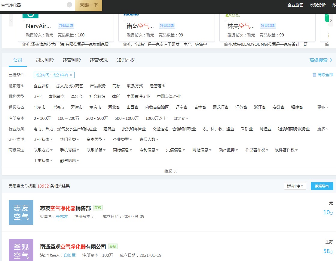 据天眼查数据显示,成立1年内的空气净化器相关企业有13932个。据《报告》显示,2020年净化器线上市场新进入企业不断增多,从Q1的271家上升为Q4的329家,线上市场出现消费升级,低端走量,中高端、高端升级的态势。