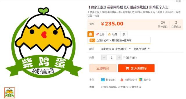 这些DVD是在淘宝上进行交易,第一批发行了7000册,每册235元,上架3分钟就被一抢而空,收入164.5万,一次性回本。