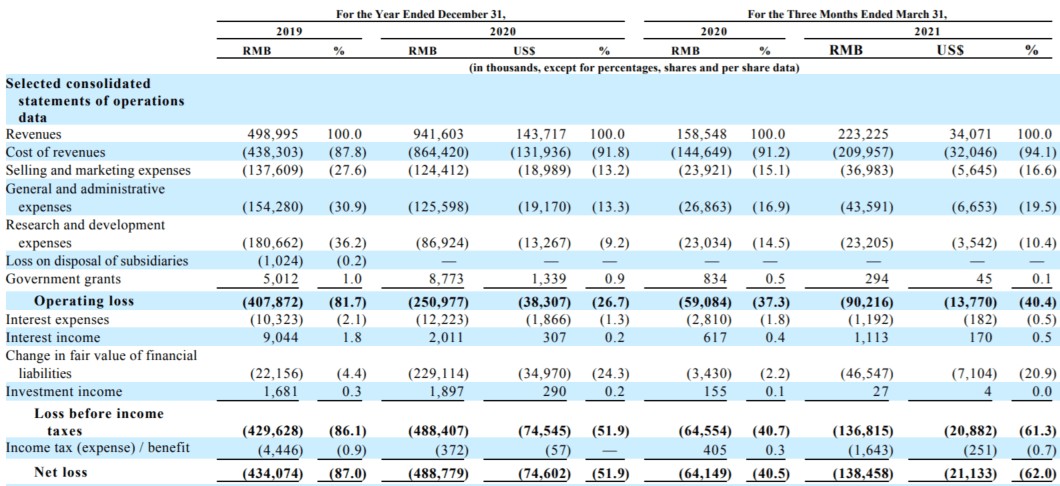 此时大家是否会和笔者一样产生一个大大的问号,为什么零氪科技2020年在营业收入几近1倍增长的同时没有实现利润,2021年一季度亏损率更是高达115%?