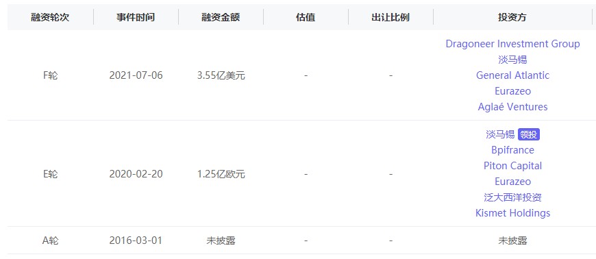 本轮融资由新投资者Dragoneer Investment Group领投,现有投资者淡马锡、泛大西洋投资集团(General Atlantic)、欧瑞泽基金集团(Eurazeo)、法国国家投资银行(Bpifrance)旗下的风险投资基金Large Venture、Aglaé Ventures、Kismet Holdings和Armat Group跟投。