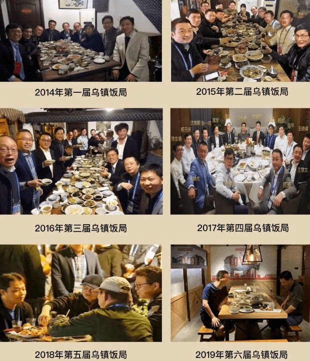 从第一次的八人小队,到2016年17人的大部队,2017年昙花一现的“东兴局”扰乱了丁磊的酒席后,2019年丁磊和李彦宏的双人对饮,则直接为乌镇饭局的江湖故事画下句号。
