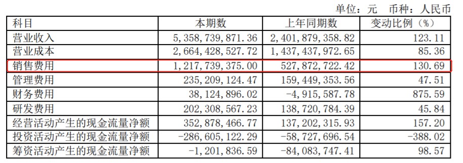 其中,用于市场营销推广及广告费用高达6.94亿元,比去年同期的2.19亿元大涨了217%,远高于上半年123.11%的营收增幅。