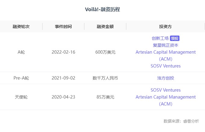 据Finsmes和Cision报道,位于洛杉矶的人工智能驱动的社交商务平台Voilà 完成了600万美元的A轮融资。本轮融资由创新工场领投,复星锐正资本、Artesian、SOSV跟投。