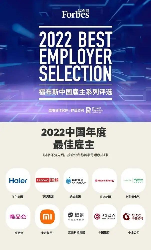 【2022福布斯中国最佳雇主榜单发布,蚂蚁、小米等上榜】福布斯中国联合罗盛咨询公司正式发布“2022中国年度最佳雇主”评选结果,蚂蚁集团、海尔集团、小米集团等10家企业入选。该评选历时3个月,超过7万人参与,以企业及员工调研、企业资质审核、专家评审团评选等多维度进行。(新快报)