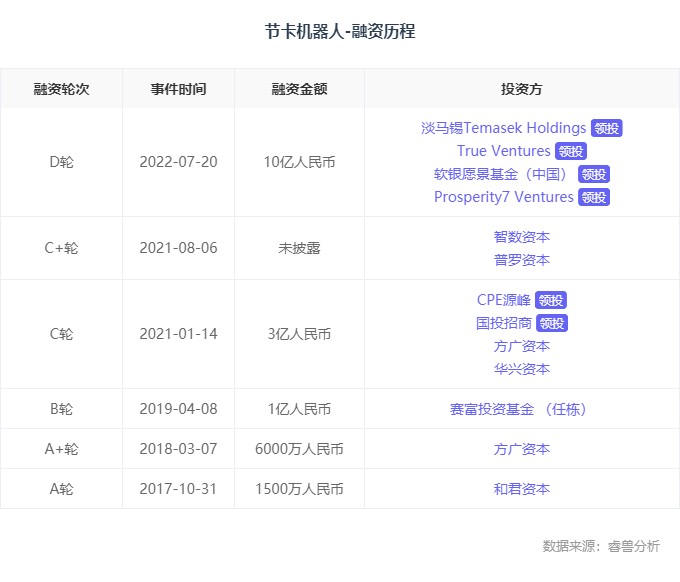 2021年,节卡机器人先后完成C轮和C+轮融资。C轮单笔融资金额3亿元,创当时行业历史新高。此轮融资完成后,节卡机器人成为协作机器人领域融资轮次最多且融资规模最大的企业。