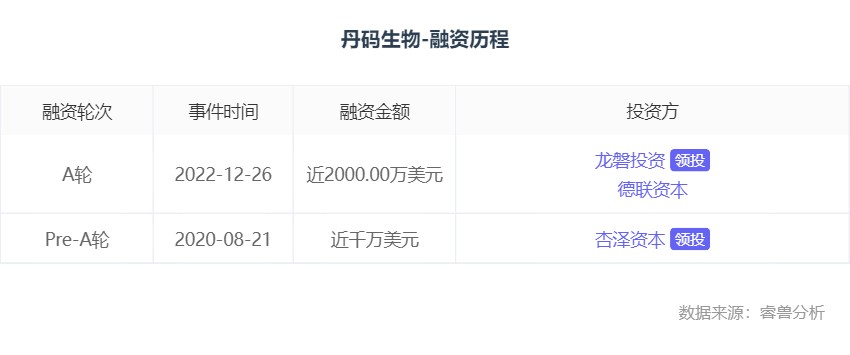 2022年12月26日,D2M Biotherapeutics(以下简称“丹码生物”)宣布完成了近2000万美元的A1轮融资,由龙磐投资领投,德联资本跟投,本轮融资将主要用于管线的推进和技术平台的建设,行远致同担任本次交易的独家财务顾问。