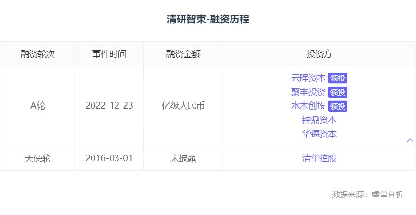 近日,清研智束宣布完成亿元级A轮融资,本轮融资由云晖资本及无锡产业聚丰、水木创投联合领投,钟鼎资本、华德资本等多家投资机构跟投。