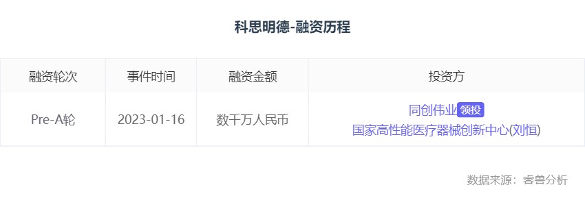 近日,深圳科思明德医疗科技有限公司(以下简称“科思明德”)完成数千万元Pre-A轮融资,由同创伟业领投,国家高性能医疗器械创新中心(以下简称“国创中心”)跟投。本轮所筹资金将投入于进一步巩固和扩大研发管线,加速产品化推进,并增加品牌的市场投入。