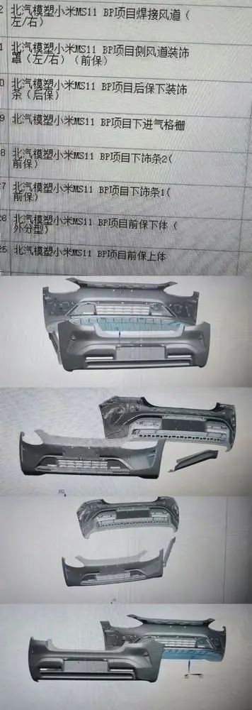 【小米首款车型外观细节曝光,展示前脸和尾部设计】近日一组小米汽车首款车型的外观零配件图片曝光,主要展示了车辆前脸和尾部的设计细节。(IT之家)