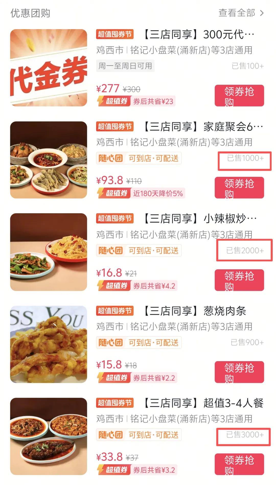 ▲铭记小盘菜在抖音团购上的套餐销售火热