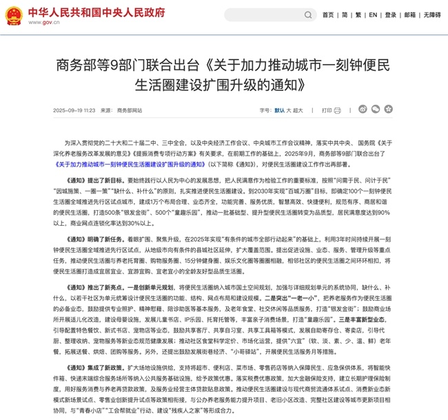 2025 年,商务部等 9 部门再出台《关于加力推动城市一刻钟便民生活圈建设扩围升级的通知》,明确2030 年 “百城万圈” 目标—— 在 100 个试点城市建成 1 万个 “功能完善、智慧便捷、商居和谐” 的便民生活圈,为社区商业发展提供了清晰的路径指引。