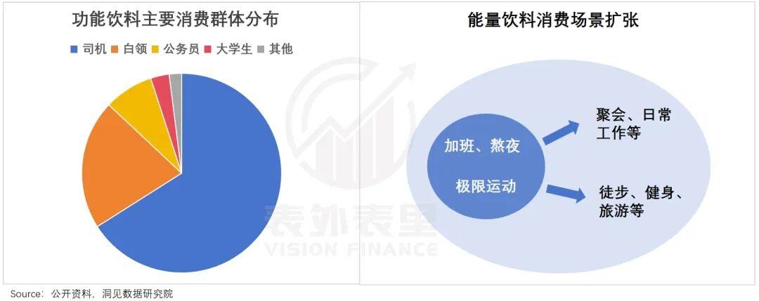 数据显示,功能饮料核心用户中,白领、公务员、大学生占据了不小的比例。能量饮料逐渐从卡车司机、快递小哥“专属补给”,升级为“全民日常抗疲劳解决方案”。