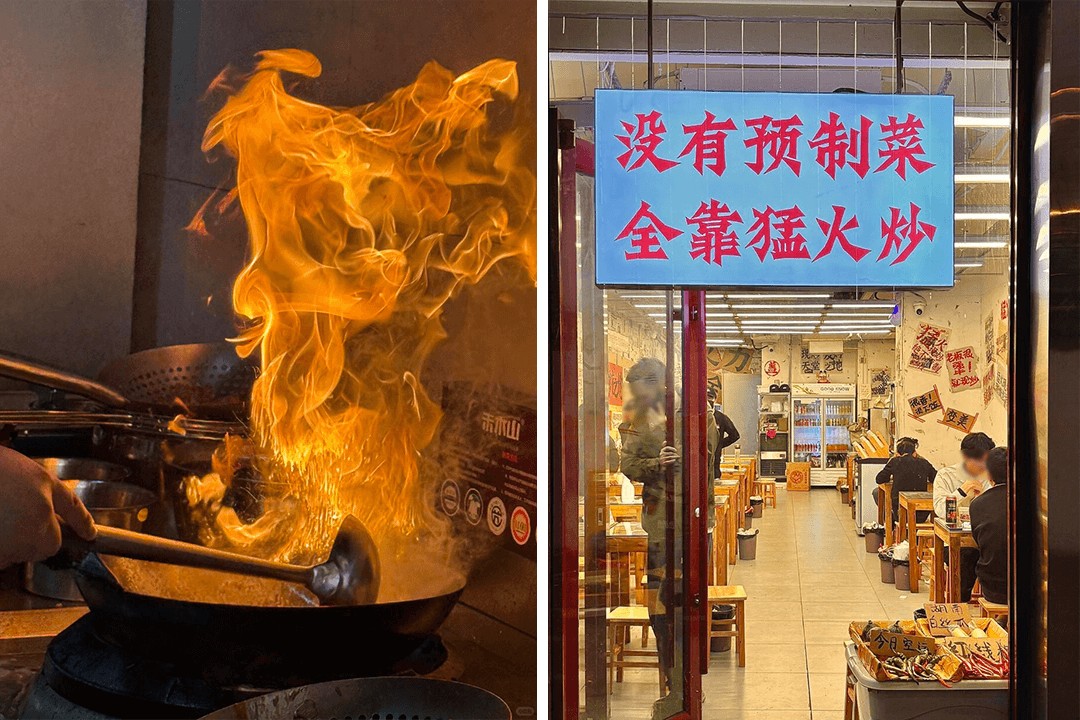 其一,猛火现炒有锅气,“暴打”预制料理包。