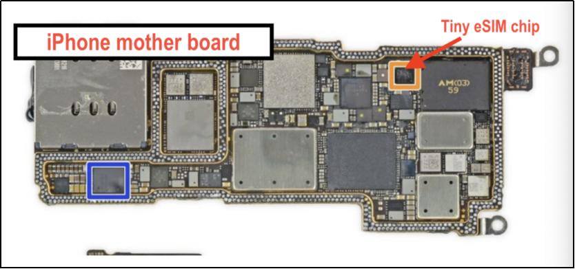 eSIM,全称为Embedded-SIM(嵌入式SIM卡)。和常见的SIM卡不同,eSIM不再是卡片形式,而是变成一颗小芯片,嵌入到设备的电路板上。