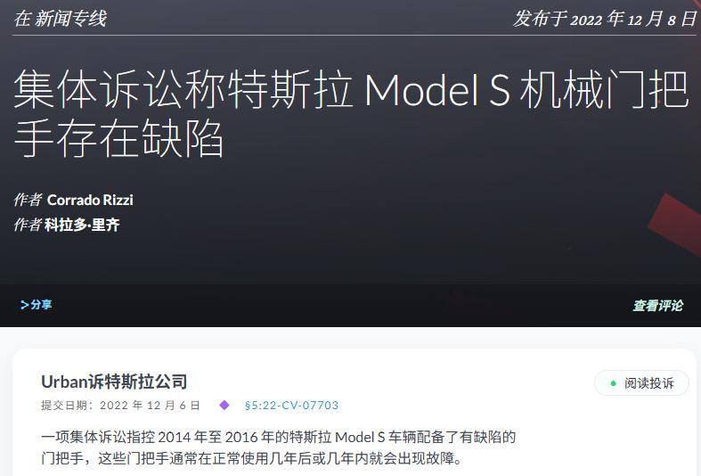 集体诉讼称特斯拉 Model S 机械门把手存在缺陷