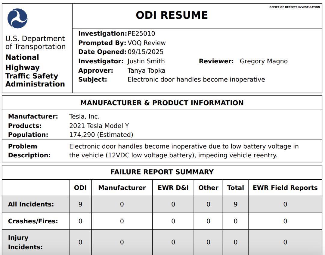 比如上个月中美国的国家高速公路交通安全局 NHTSA 就对特斯拉发起了一项调查,原因是有部分 2021 款 Model Y 的车主表示因为低压电瓶有 bug ,自己的孩子被锁在车上没法下来。