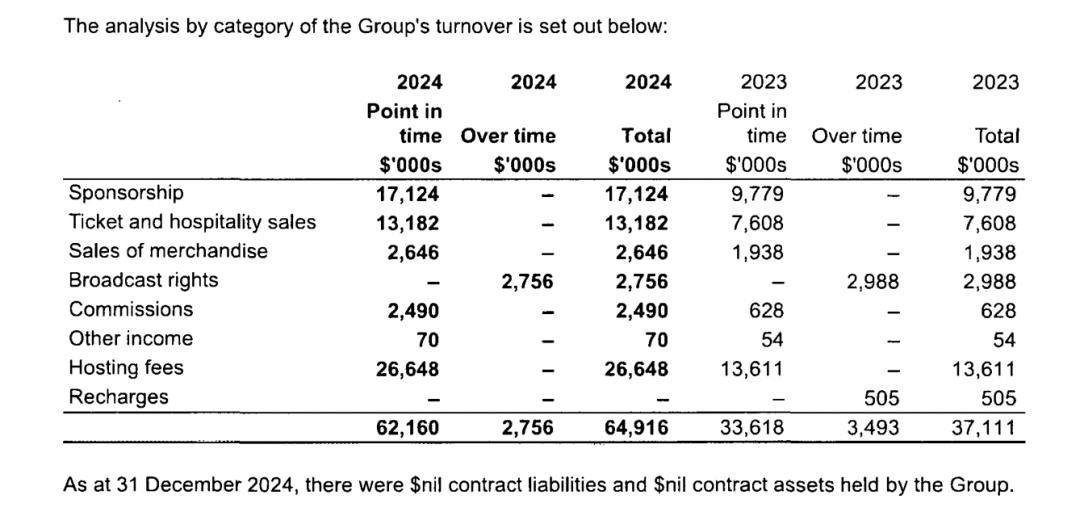 其次是赞助收入,LIV Golf Ltd 2024年在海外(非美区)业务中通过赞助业务获得了1712万美元的收入,几乎是 2023年的两倍,但与PGA Tour那种每年数以亿美元计的赞助收入依然有巨大差距。