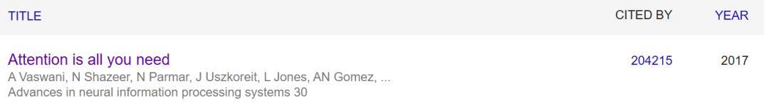 现如今,这篇发表于 2017 年的论文已经收获了超过 20 万引用量,绝对算是本世纪最具影响力的计算机科学论文之一(甚至或许没有之一)。