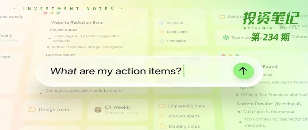 有人质疑Granola的护城河不深,毕竟它自己并不研发大语言模型。目前看,它的技术迭代还是依托于整个行业的水涨船高。然而通过对这家公司的深入了解,我们能看到,Granola所要守护的并不只是会议纪要这一座城池。