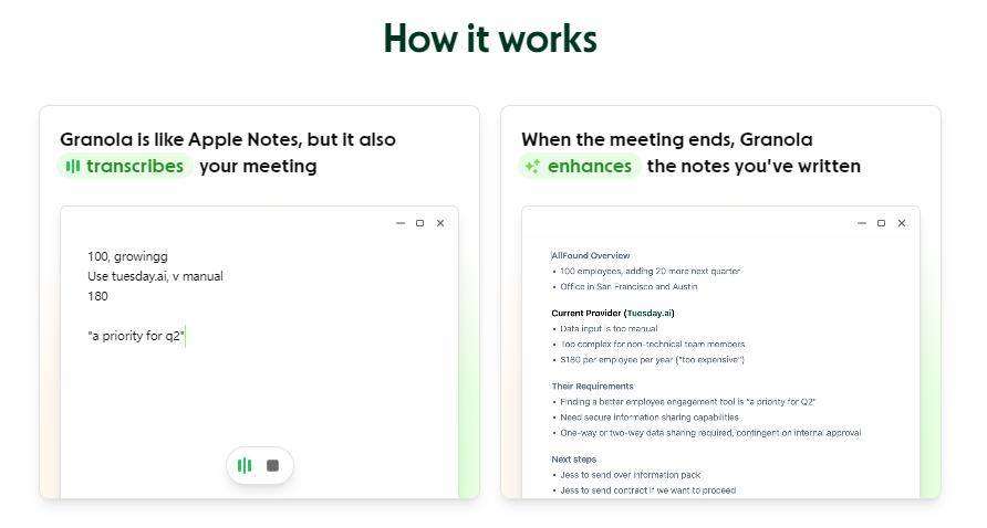 事实上,Granola的这种思路恰恰符合了人对于会议纪要的本能直觉——在用纸笔做会议笔记的时代,职场人也往往不会大段大段记录他人的会场发言,而正是如今天的Granola用户那样,把自己听到的关键信息用简单的字句随手记在本子上,会后再根据这些草记补全会议内容。