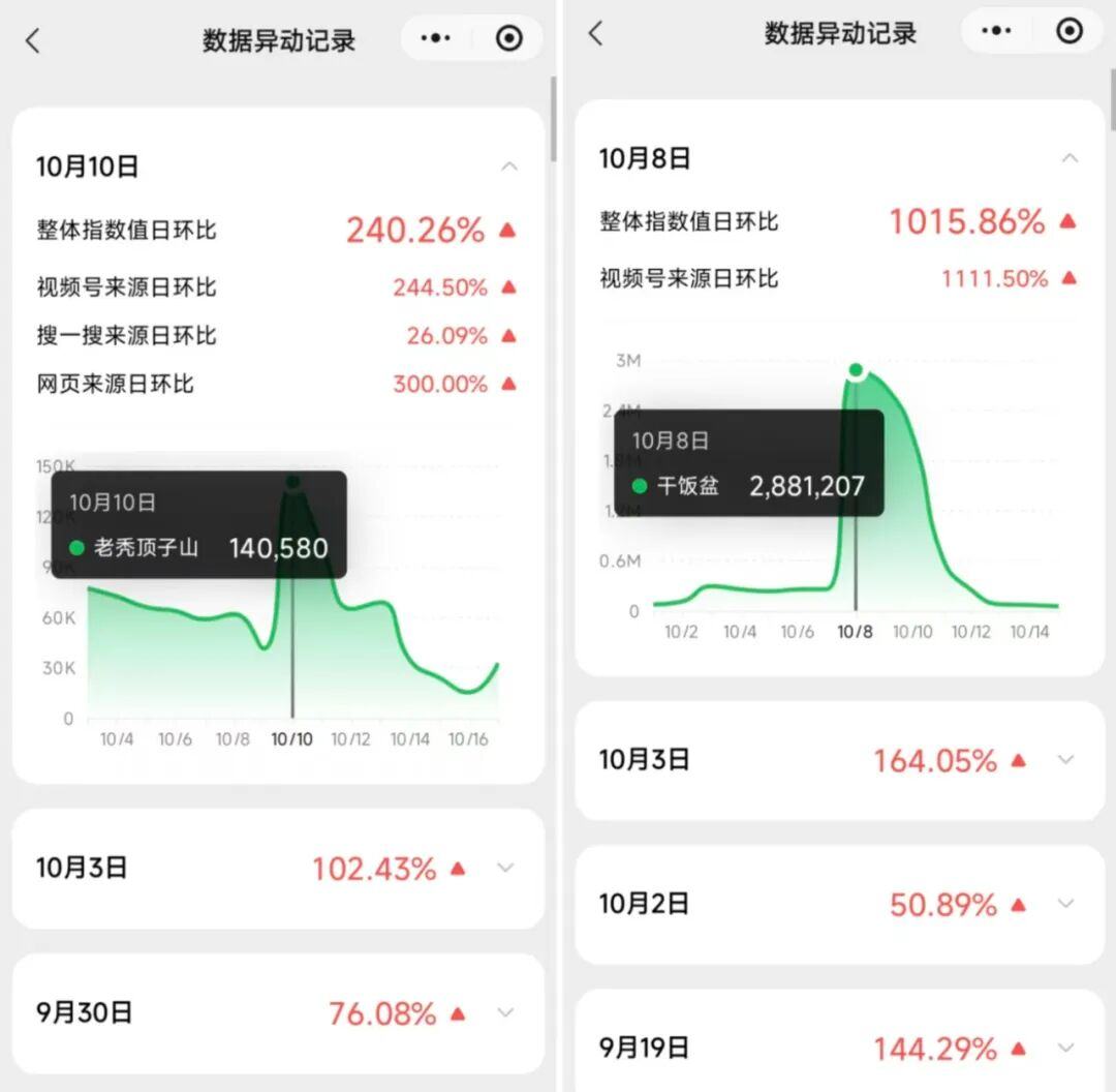 “干饭盆”更离谱,10月8号直接飙到1015%。