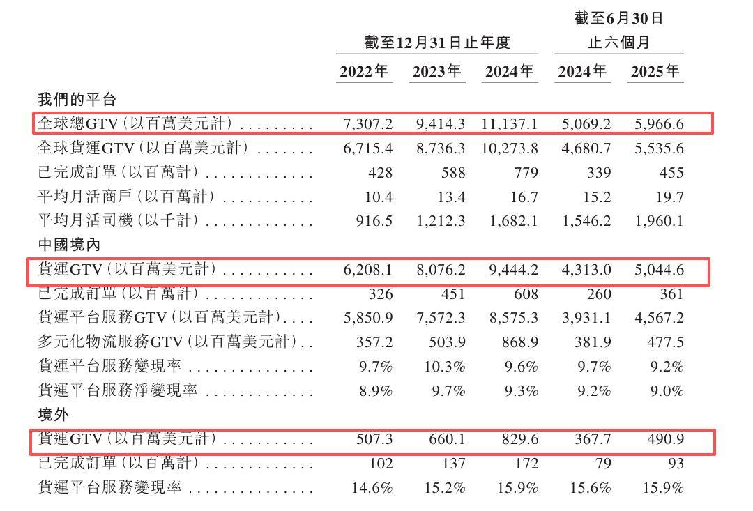 招股书开篇便用四项“全球第一”奠定行业地位——2025年上半年全球闭环货运GTV最大物流交易平台、全球最大同城物流交易平台、全球已完成订单最多平台及全球平均月活商户最多平台。