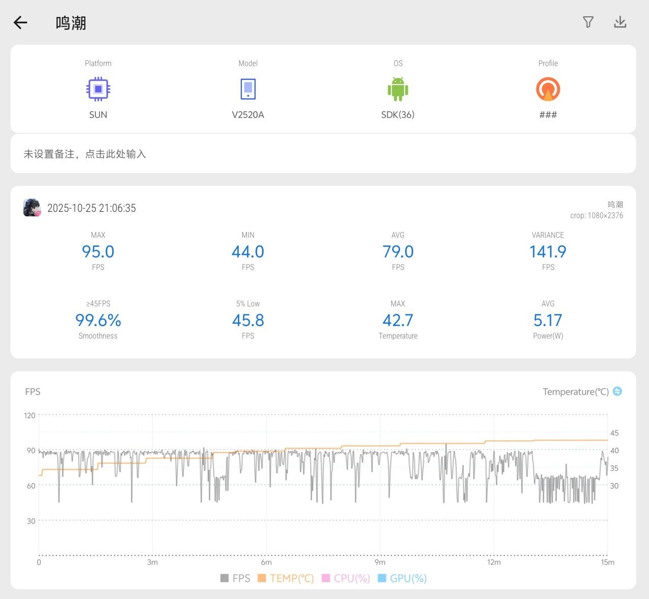 当然,在我看来,跑分对这台手机来说其实意义不大。想要知道一款设备的实际体验,那必须在游戏里才能完全体现,那我这边直接就用眼下最吃配置的手游之一《鸣潮》来给它上压力。