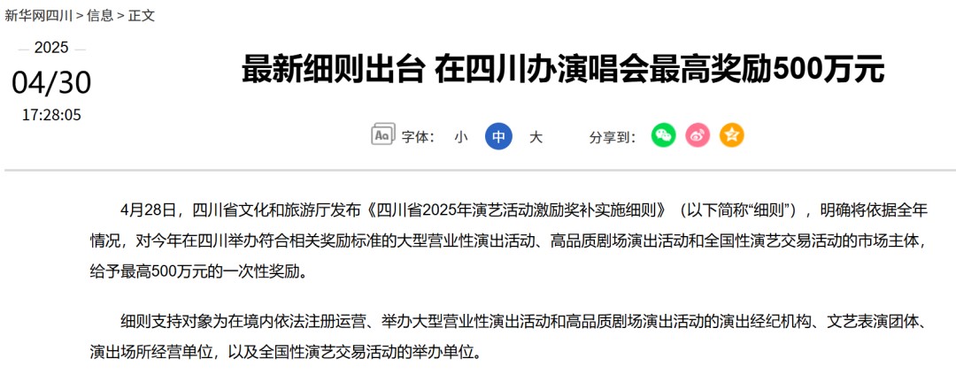 各地方也都看明白了,现在纷纷为演唱会出台奖补政策。