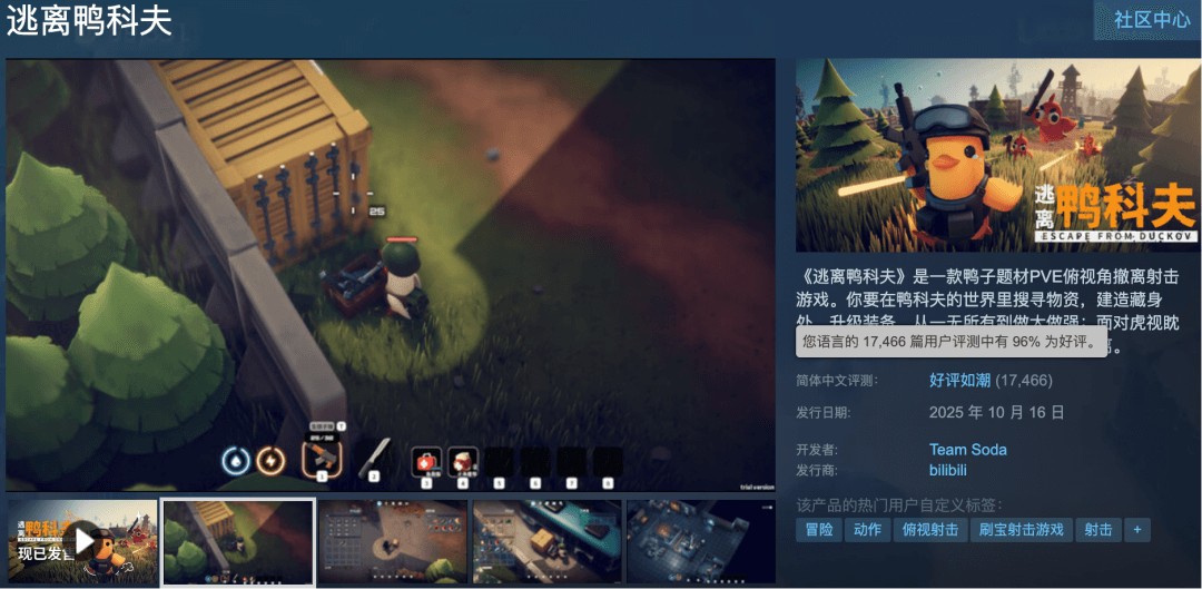 各大平台到处都是它的信息,steam 同时在线人数一度超过了 30 万,口碑更是能吊锤今年绝大部分新游戏,一万七千多条评论,有 96% 的压倒性好评。