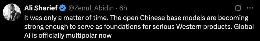 网友们纷纷表示,中国的开源基础模型已经具备了足够的能力来支持西方产品的开发,这意味着全球 AI 正进入多极化竞争的新格局。