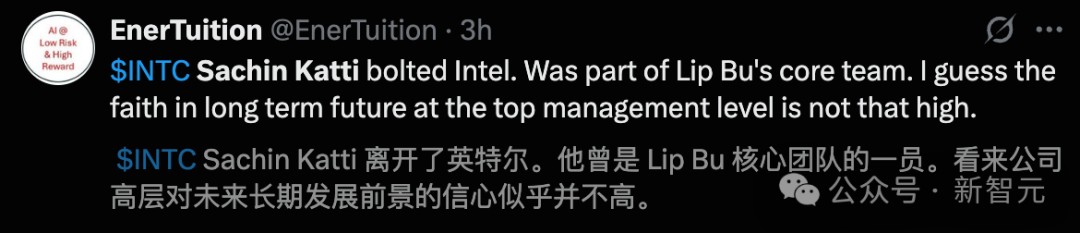 今天一早,英特尔CTO兼首席AI官Sachin Katti突然宣布离职。
