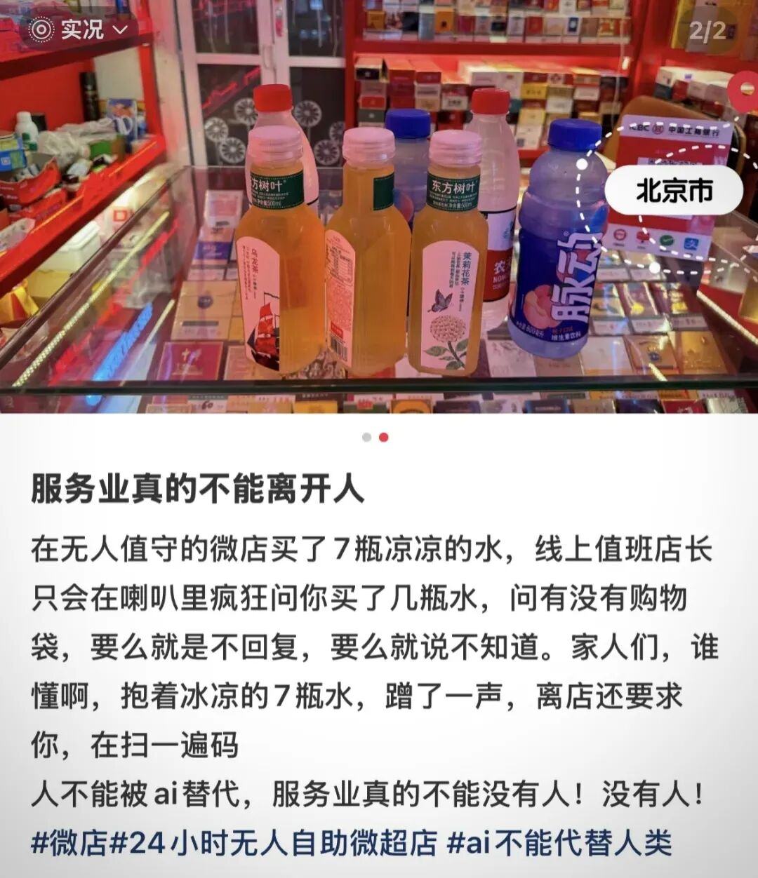 有人反映,与其说是AI超市,不如说是大型智能售货机。