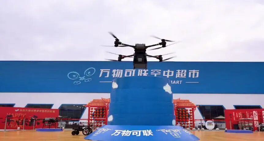 比如郑州出现的“空中超市”。这家仓储式超市结合“智能购物车全程伴随”的店内体验,以及“无人机配送”的店外服务。消费者下单后,商品可通过无人机在短时间内送达,做到真正的科技感与方便我全都要。