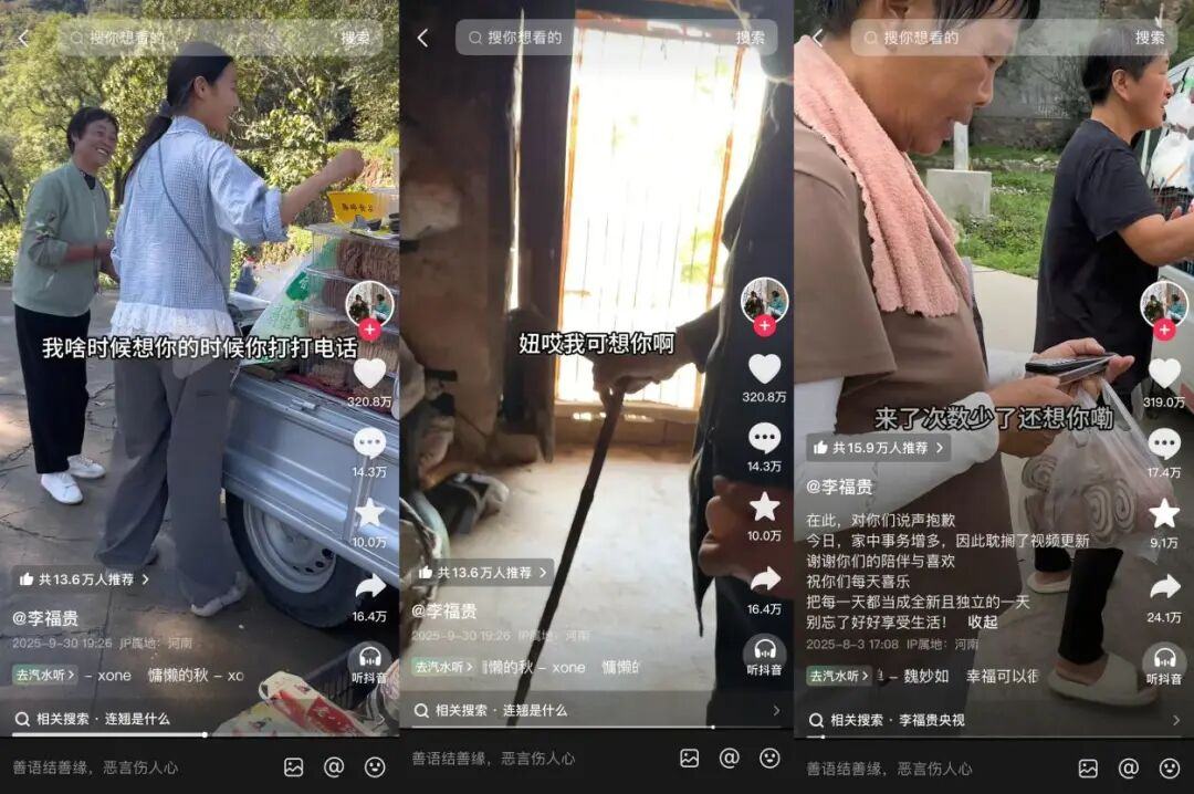 作为一位记录乡村生活的博主,李福贵因拍摄在乡间卖货的视频逐渐走进大众视野。视频中那些淳朴乡亲、真挚互动,让很多网友为之动容。8月份,李福贵发布的一支“带村里老人走出大山,去郑州旅游”的视频成功出圈,也让李福贵被更多人所知,该视频目前点赞有1118.3万。