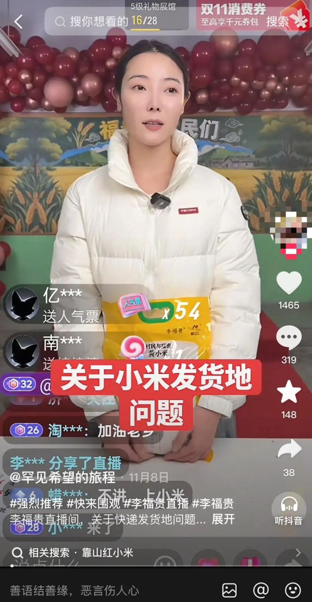 针对这些争议,李福贵一一做出回应,表示自己是按正常市价收购的,以及此次直播并非盈利,更多是助农。发货地址主要是因为,“有一部分货快递公司拉到山西晋城发货了,但货是河南太行山的”,李富贵也在直播中就发货地问题道歉解释。