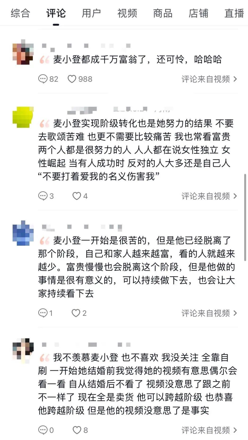 典型的一个案例是千万粉博主麦小登,起初靠为照顾父亲返乡、并记录田间劳作日常、直播助蒜农卖蒜快速涨粉,但人气增长后,麦小登不仅注入了更多个人生活内容,比如恋爱、结婚、生子,也加速了商业化进程,开始常态化直播带货。很多粉丝认为麦小登脱离了当初接地气的乡村人设,直言“麦小登一开始是很苦的,但她已经脱离了那个阶段,自己和家人越来越富裕,看的人就越来越少。”